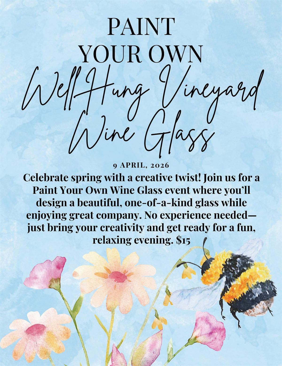 All materials provided - To paint a wine glass - No experience needed - Bring your friends - Only $15.00 - For class, instruction and materials
