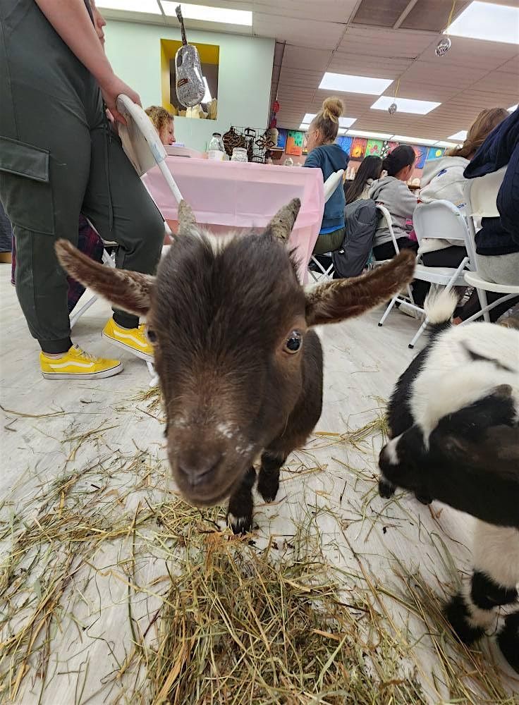 You've seen goats in pajamas. You've heard of goat yoga. Now, we introduce you to PAINTING WITH GOATS! Yes, you heard us right! Cuddle with some cute little baby goats while painting pottery! We will have 3 baby goats visiting us for two hours. This could possibly be the most fun experience you will have all year!