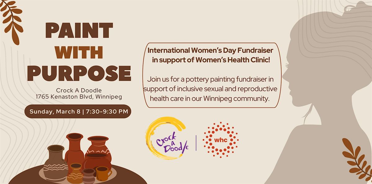 Join us on Sunday, March 8 from 7:30–9:30 PM at Crock A Doodle (1765 Kenaston Blvd, Winnipeg) for an evening of creativity, community, and celebration in support of the Women’s Health Clinic.