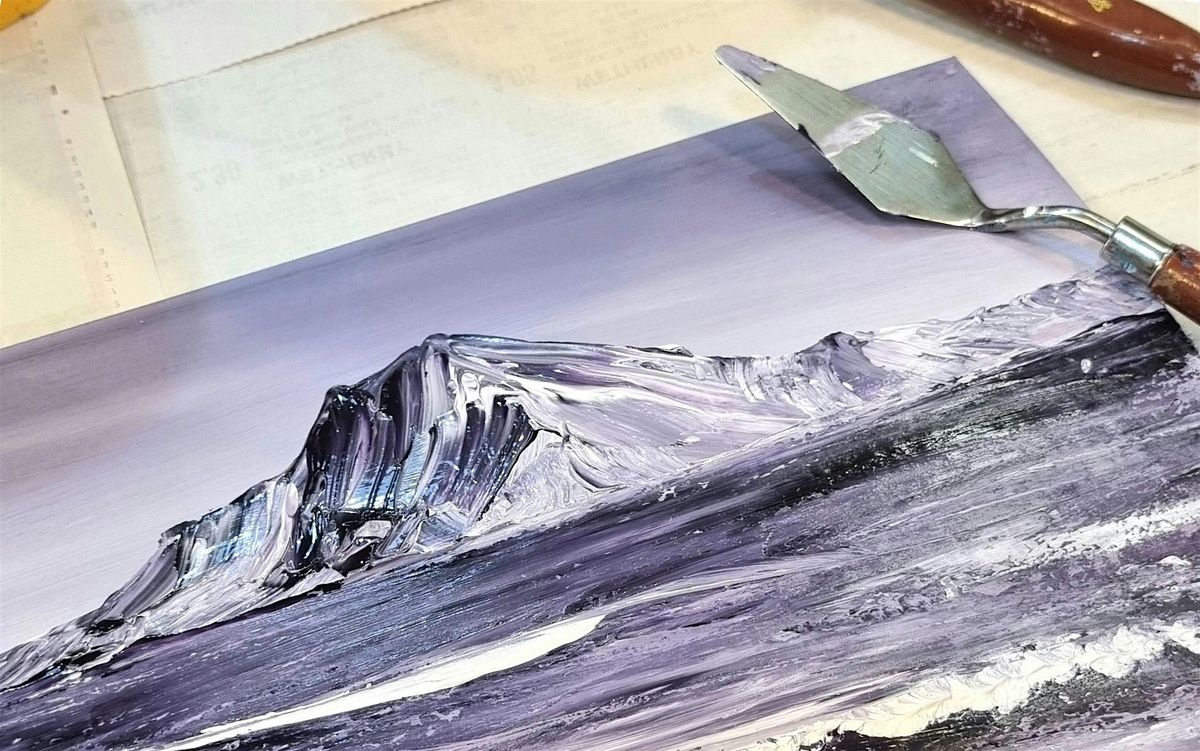 We'll ditch the brushes for bubble wrap, palette knifes, fingers, and sponges as we create dramatic landscapes and seascapes...set yourself free and see what you can create!