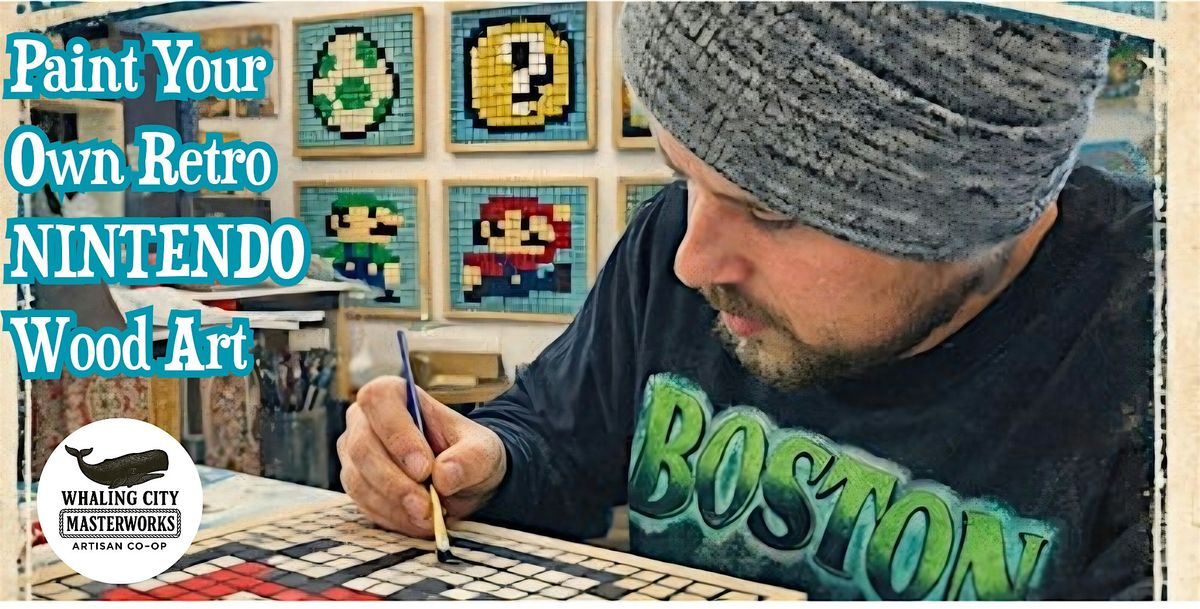 Join us at Whaling City Masterworks inside the Kilburn Mill for a fun, beginner-friendly painting workshop where you'll create your own retro 8-bit Nintendo-style artwork.
