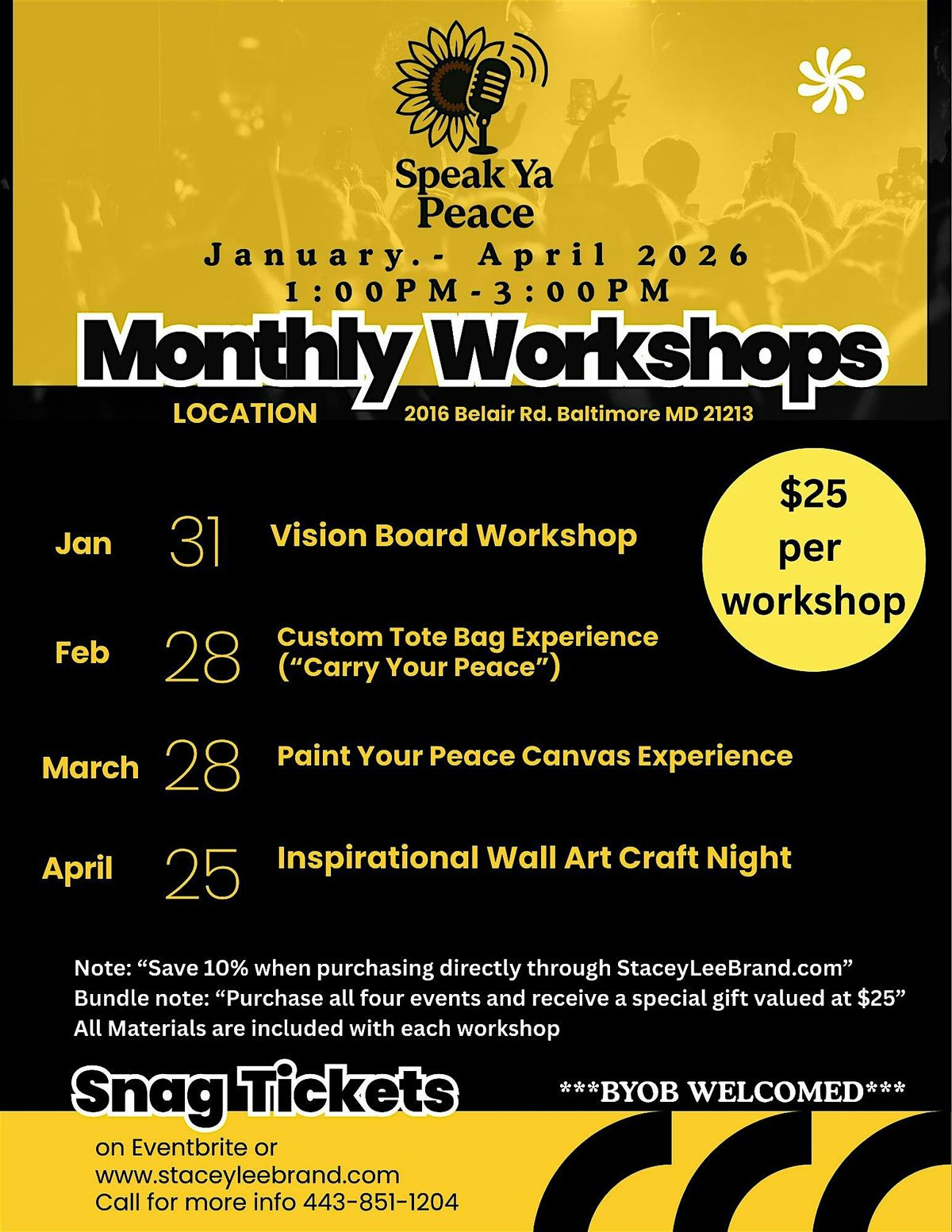 - Bundle note: “Purchase all four events and receive a special gift valued at $25”