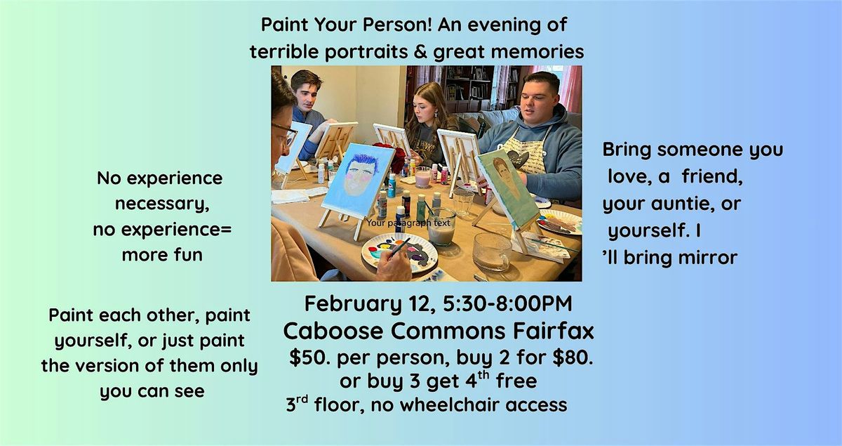Come solo and paint from a photo, or a mirror, or bring a date/friend/partner/ sibling/enemy, or your auntie and swap portraits in real time. We'll walk your through it with all the materials, and you'll leave with a one-of-a-kind reminder that love never looks like the photo anyway.