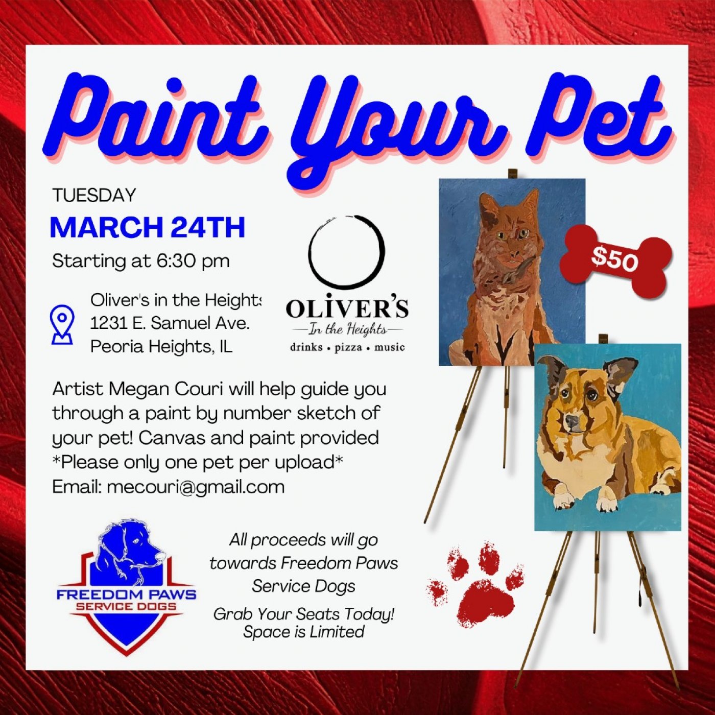 Paint your beloved pet, enjoy a great evening out, and help support service dogs for Veterans and First Responders. No painting experience needed—just come ready to have fun for a great cause!
