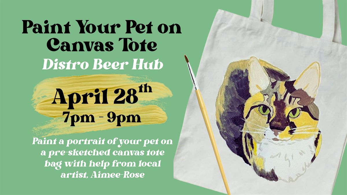 Join local artist Aimee-Rose of Art by Aimee-Rose for a fun and creative evening at Distro Beer Hub where you’ll paint a portrait of your beloved pet — this time on a canvas tote bag you can use every day!
