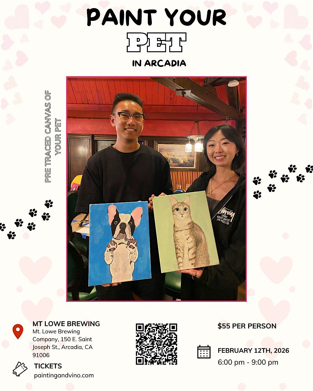 Mark your calendars for February 12th, 2026 from 6:00 PM – 9:00 PM, and join us for a fun night of pet painting! Add a fun twist to your pet painting by adding a patterned background or a bow on their head!