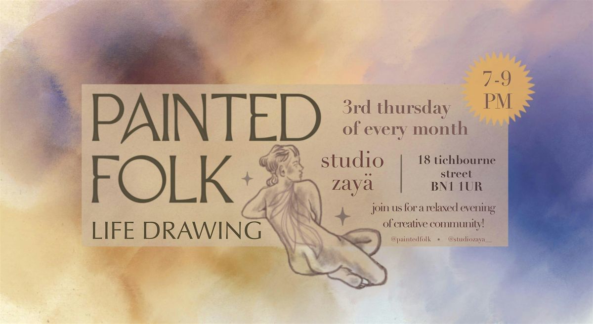 Welcome to Painted Folk - Life Drawing! Join us for a creative and relaxing evening of capturing the human form, hosted by Studio Zayรค - a gorgeous tattoo and painting studio located in the central Laines.