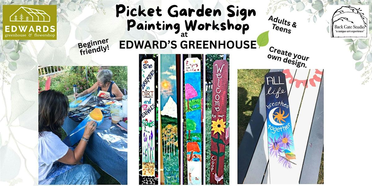 Paint a unique garden picket sign..include a saying, proverb, family name, or ??? & lots of colorful artwork. Beginner-friendly! For adults and teens.