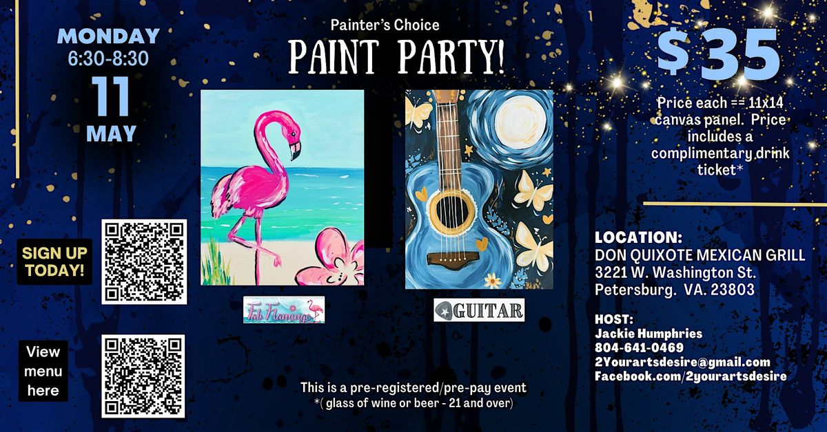 Come join us at DON QUIXOTE MEXICAN Restaurant for a fun-filled evening of painting on May 11, 2026 at 6:30 PM (Eastern Time). Let your creativity flow as you create your masterpiece!