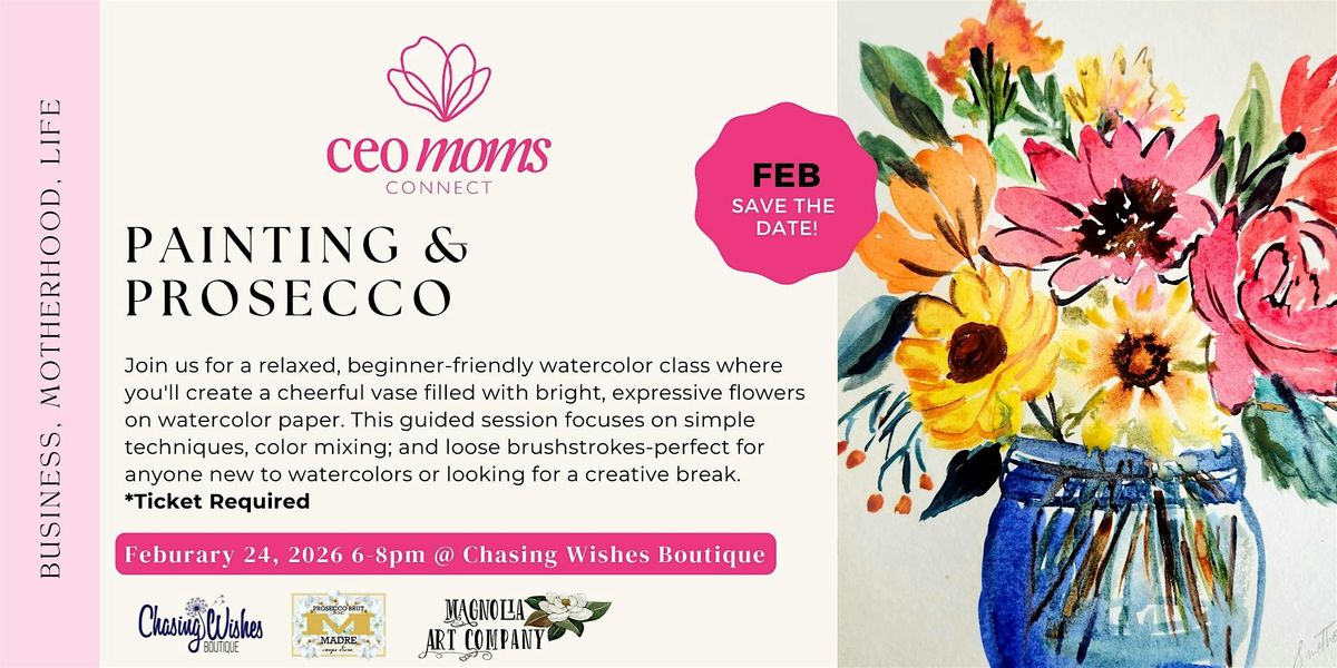 We are excited to host Painting and Prosecco at Chasing Wishes Boutique! Join us for a relaxed, beginner-friendly watercolor class, shopping, lite bites and beverages. You'll create a cheerful vase filled with bright, expressive flowers on watercolor paper. This guided session focuses on simple techniques, color mixing; and loose brushstrokes-perfect for anyone new to watercolors or looking for a creative break.