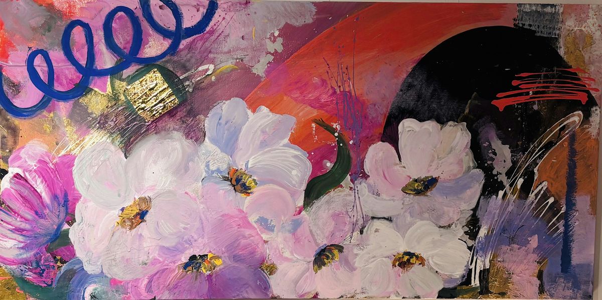 Floral Impressionism painting on black canvas with gold leafingAbout this Event