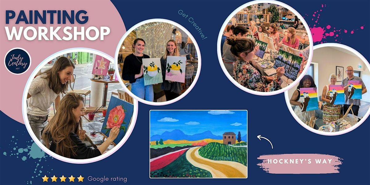 Get ready to paint like Hockney at this vibrant painting workshop! You'll splash bold, brilliant colours across your canvas as you create a whimsical cottage perched on a sun-drenched hillside, overlooking a sweeping coastal view. Let your imagination run wild with playful, stylised clouds and suggestive -to add pattern and interest to your painting. This is abstract landscape painting at its most joyful—no rules, just colour, creativity, and the pure pleasure of making art. Perfect for anyone craving an evening of uninhibited artistic fun.