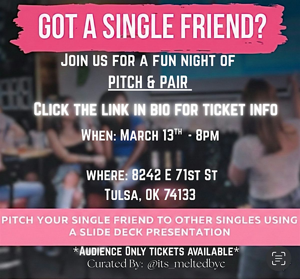 Tired of endless swiping, awkward first dates, and traditional speed dating? At Pitch & Pair, we're flipping the script on singles events with a fun, interactive matchmaking experience where friends pitch their single besties to a room full of eligible singles. *Audience only tickets are available if you're just wanting to watch *
