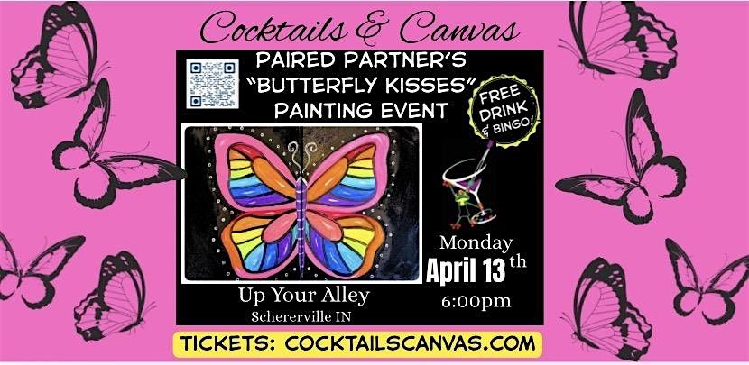 Join us for the Paired Partner "BUTTERFLY KISSES" Cocktails and Canvas Fun Paint & Sip Event. This is an awesome in-person gathering where you can unleash your creativity while enjoying delicious cocktails. Perfect for pairs who want to bond over art and laughter. No experience needed—just bring your smile and get ready to paint some beautiful memories!