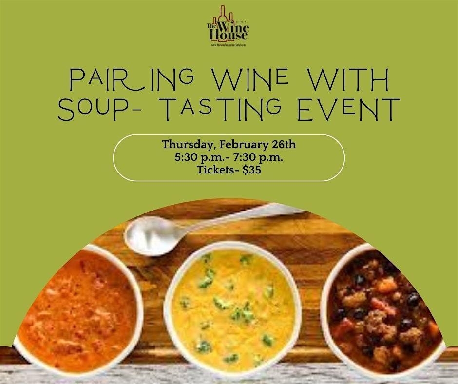 Join us on March 26th for a delightful soup and wine pairing event! During this event, we will sample four different soups, each paired with a carefully selected wine: