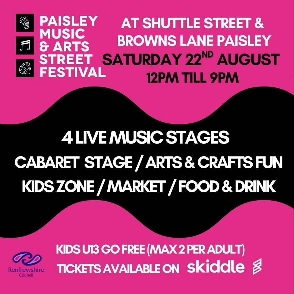 A family friendly music and arts festival at Shuttle Street and Browns Lane in Paisley