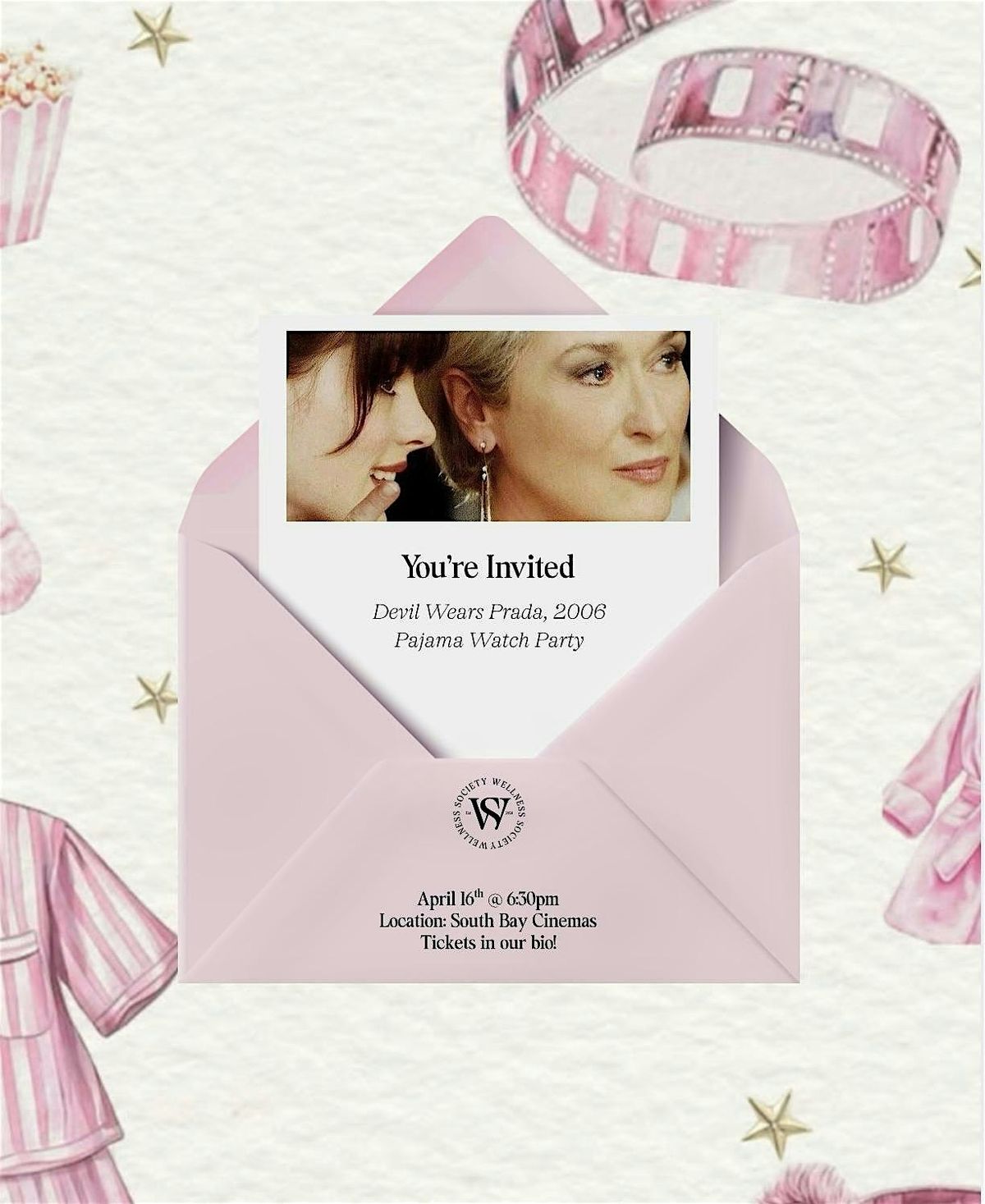 Come out for a Pajama themed girls night at South Bay Cinemas in Huntington. Grab your coziest PJs, your best girls, and get ready for the ultimate chic movie night. We’re hosting a pajama party-themed watch event featuring the original 2006 classic, The Devil Wears Prada.