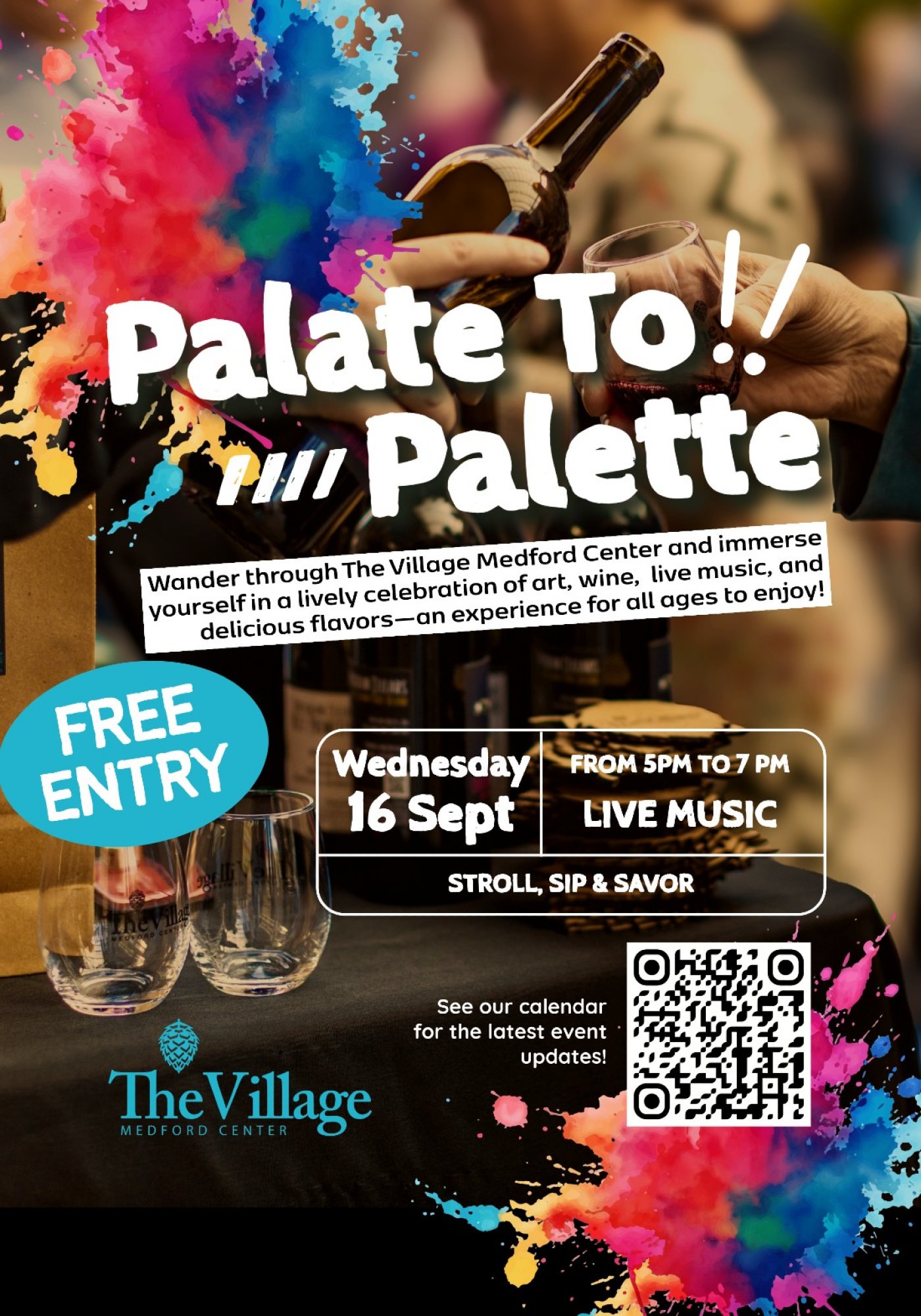 Wander through The Village Medford Center and immerse yourself in a lively celebration of art, wine, live music, and delicious flavors-an experience for all ages!