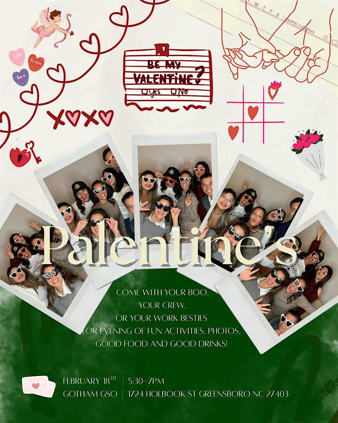 Celebrate LOVE - with friendship, connection, and community at our Palentine’s event hosted at Gotham GSO on Feb 18th from 5:30-7pm. Whether you’re coming with your honey, friends or showing up solo, this night is all about fun, creativity, and good energy.