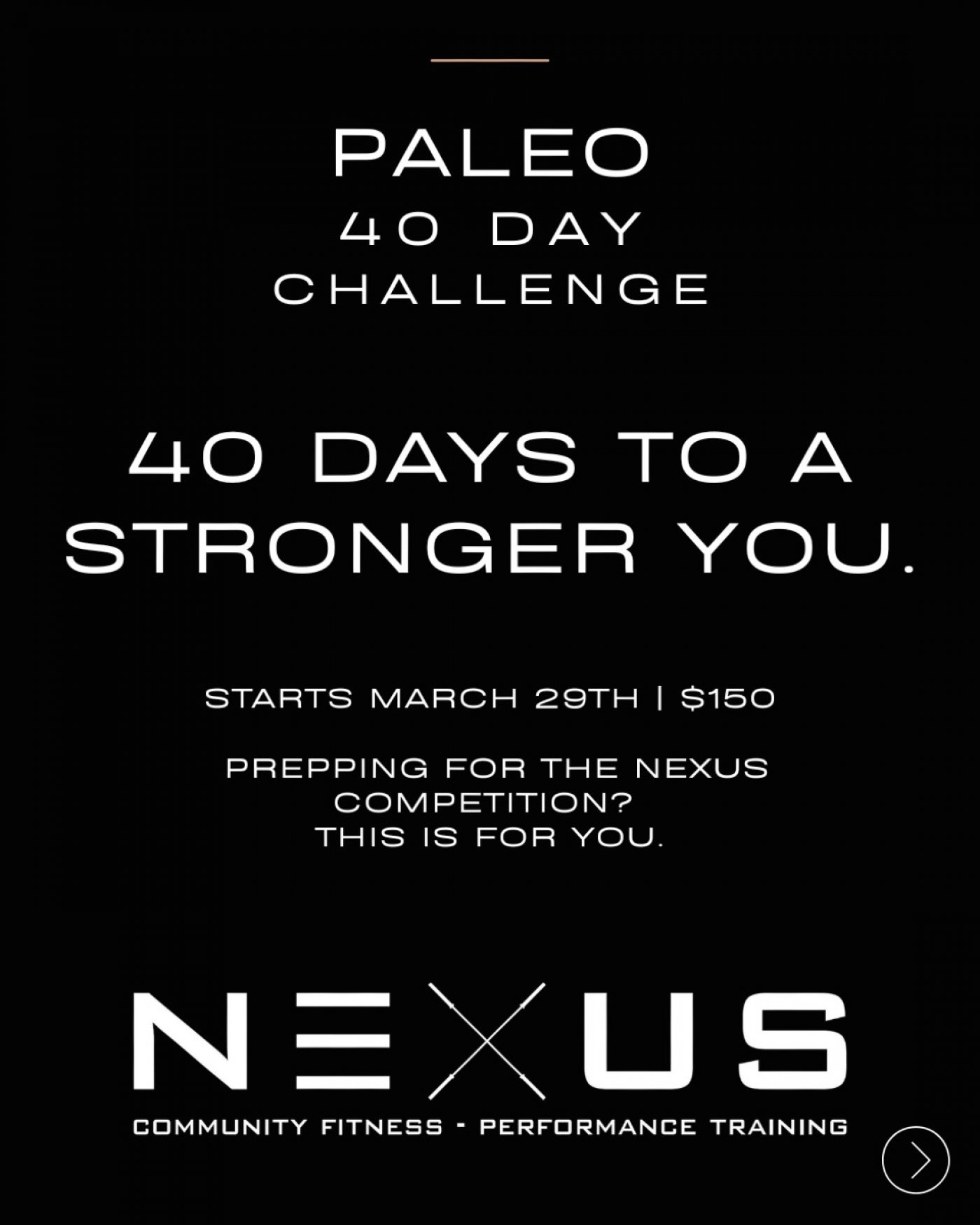 Built for Battle is a 40-day, strength & conditioning-style training program designed to sharpen your strength, build your energy, and prepare your body and mind for the NEXUS Community Competition. 💪 You do not have to compete in the NEXUS Community Competition to participate in our Built for Battle training program... but you’ll definitely be prepared to!