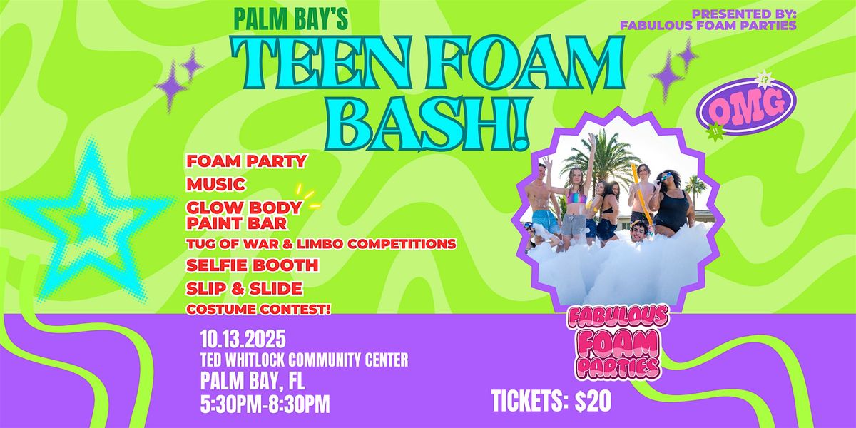 Fabulous Foam Parties is bringing the ULTIMATE teen event to Palm Bay β and you donβt want to miss it! Join us on Sunday, October 13th from 5:30 PM β 8:30 PM at the Ted Whitlock Community Center for a night packed with energy, music, and FOAM! πβ¨