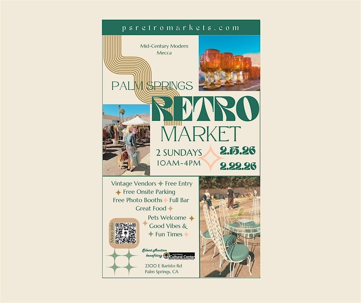 A fun filled day for Vintage Lovers! Over 50 vintage vendors, full bar, pet friendly, free admission, cajun and asian food, music, free parking. It's Film Month so you can catch a classic movie too! We have a silent auction to benefit the Palm Springs Food Bank @The Center. our goal is to raise $7k towards their annual price of paper bags. Please join us!