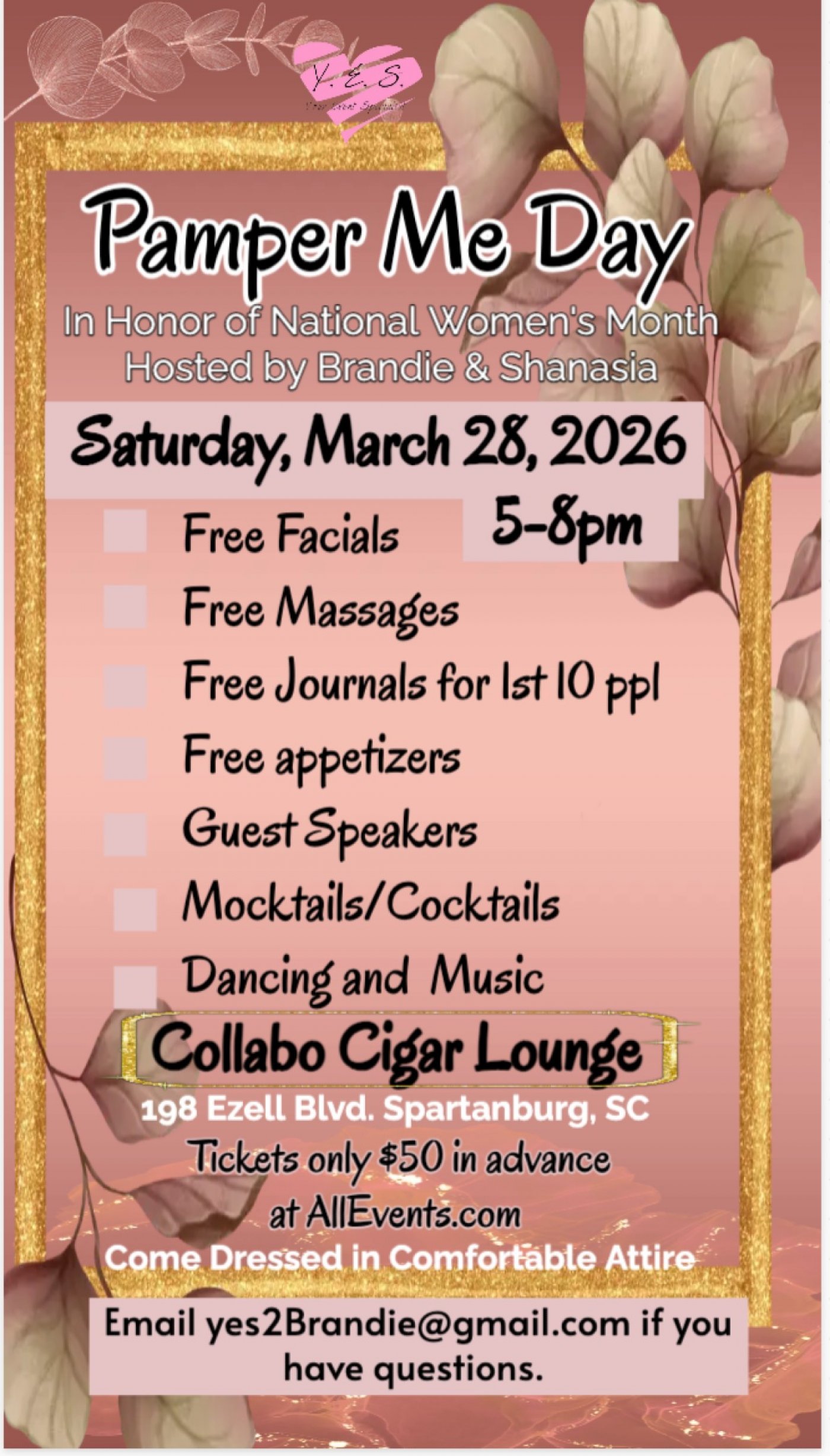 Let the pampering begin! #PamperMeDay #Y.E.S.Events #SpartanburgSparkle #WomensMonth๐
