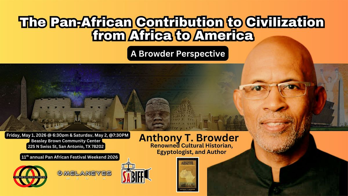 Join the Pan African Cultural Community (PACC), Melaneyes Media, and the San Antonio Black International Film Festival (SABIFF) for an empowering cultural weekend featuring renowned Egyptologist, historian, and author Anthony T. Browder.