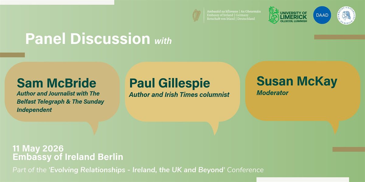 The event is part of the ‘Evolving Relationships - Ireland, the UK and Beyond’ Conference and will be followed by a reception. [For more on the conference see: https://www.hu-berlin.de/en/events/details/international-conference-with-ul-and-uu-evolving-relationships-ireland-the-uk-and-beyond]