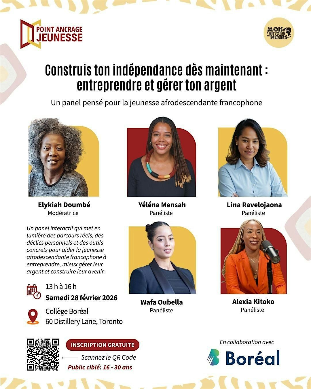 Un panel interactif qui met en lumière des parcours inspirants, des déclics personnels et des outils concrets pour accompagner la jeunesse afro-descendante francophone dans l’entrepreneuriat, la gestion de l’argent et la construction d’un avenir durable.
