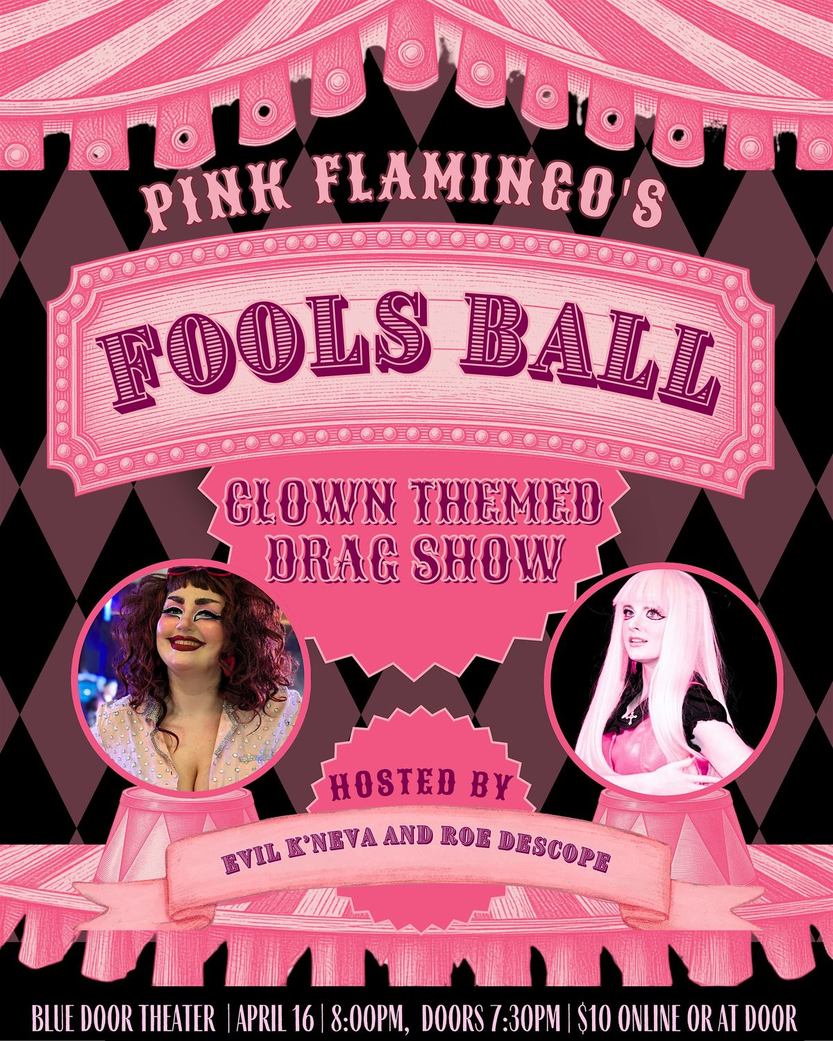 We are so excited for our Pink Flamino's Fools Ball! The Fools Ball is a clown themed drag show with some of spokane best drag clowns.