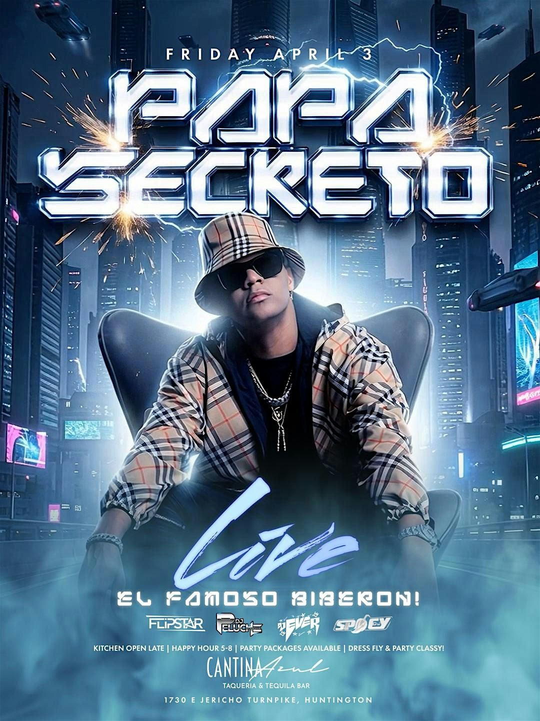 Papá secreto performing live in cantina azul! Friday April 3! Kitchen open all night! Party packages available