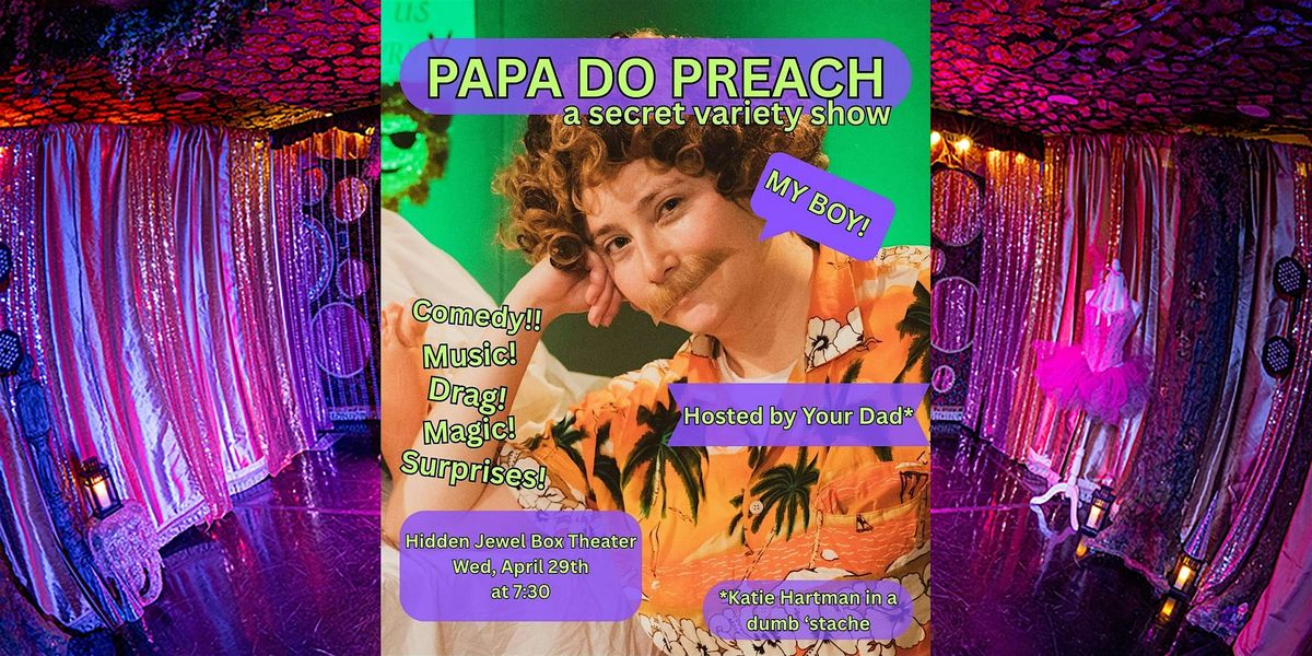 Comedy! Music! Drag! And so MUCH MORE! Papa Do Preach is an extra special comedy variety show with the best acts in the city ready to breathe a little life into your tired soul.
