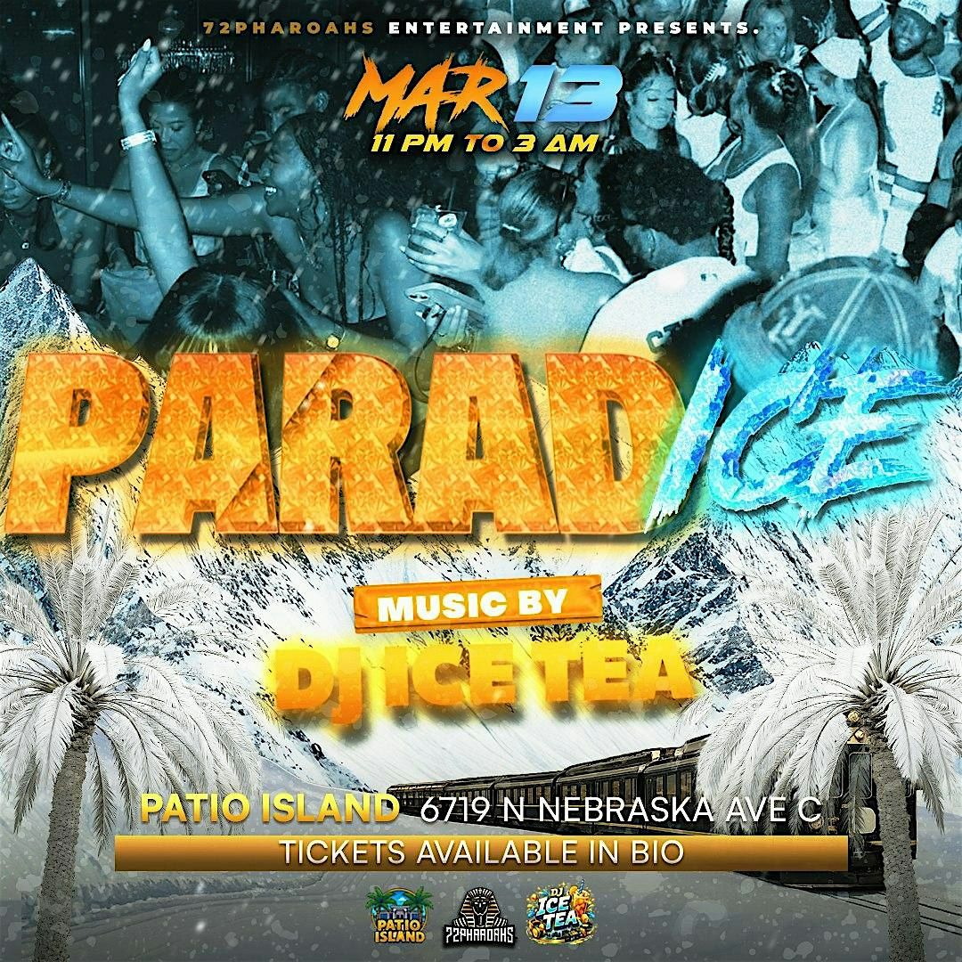 Paradice is a high-energy late-night party happening March 13 from 11PM–3AM at Patio Island (6719 N Nebraska Ave). Presented by 72 Pharoahs