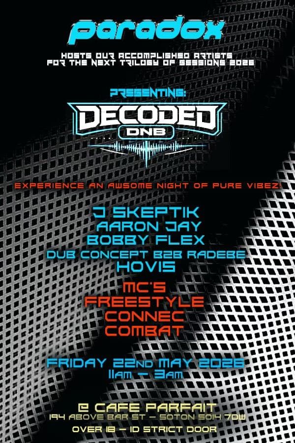Paradox presents Decoded DNB @ Cafe Parfait 22nd May 2026 11pm-3am