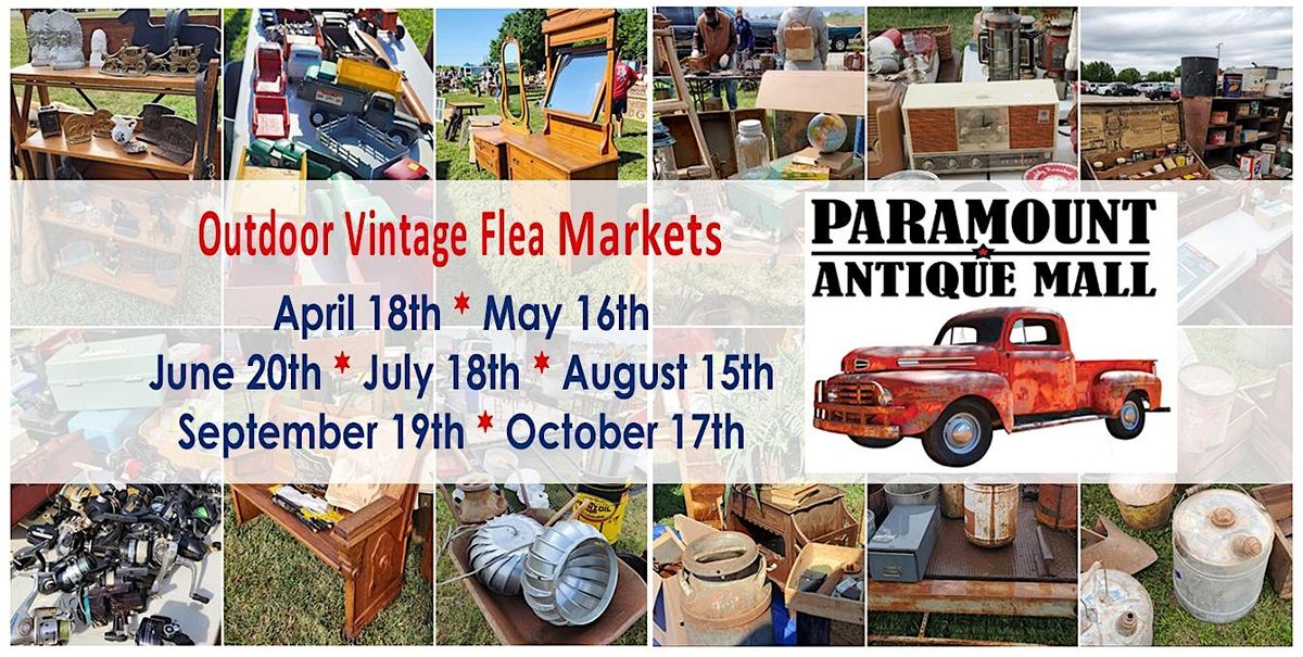 Paramount Antique Mall's Outdoor Vintage Flea Markets are the place to be! The 3rd Saturday of the month from April through October. Over 50 booths set up outside with antiques, vintage goods, home & garden décor, primitives, advertising, tools, industrial, furniture & so much more!! Paramount Antique Mall is located at 135th & West Kellogg in Wichita Kansas. Vintage Flea Markets are open outside the store from 8 am - 3 pm. Free Admission! Plus you can shop inside the store on flea market days from 9 am - 6 pm and save 10% store-wide. Call 316-722-0500 to reserve a booth space! Spaces rent for $35! Markets are rain or shine! Plenty of parking in the parking lot in front of the store. Hope to see you there!