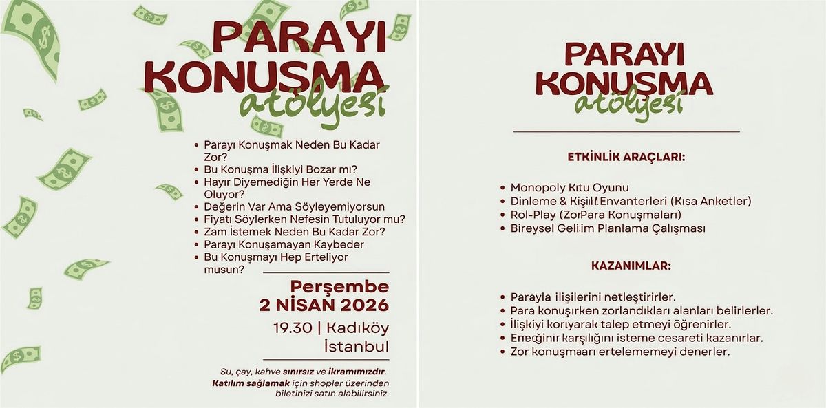 Bu atölye, parayla kurduğumuz iletişimdeki psikolojik engelleri anlamak ve finansal konularda sağlıklı, şeffaf sınırlar çizebilmek için tasarlandı.