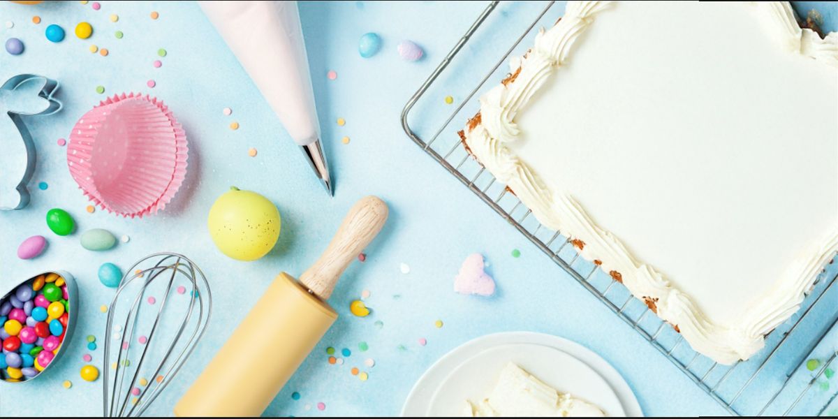 We'll provide the cake layers, the buttercream icing, the coconut and other garnishes so that you can form and decorate your own spring-time bunny cake.