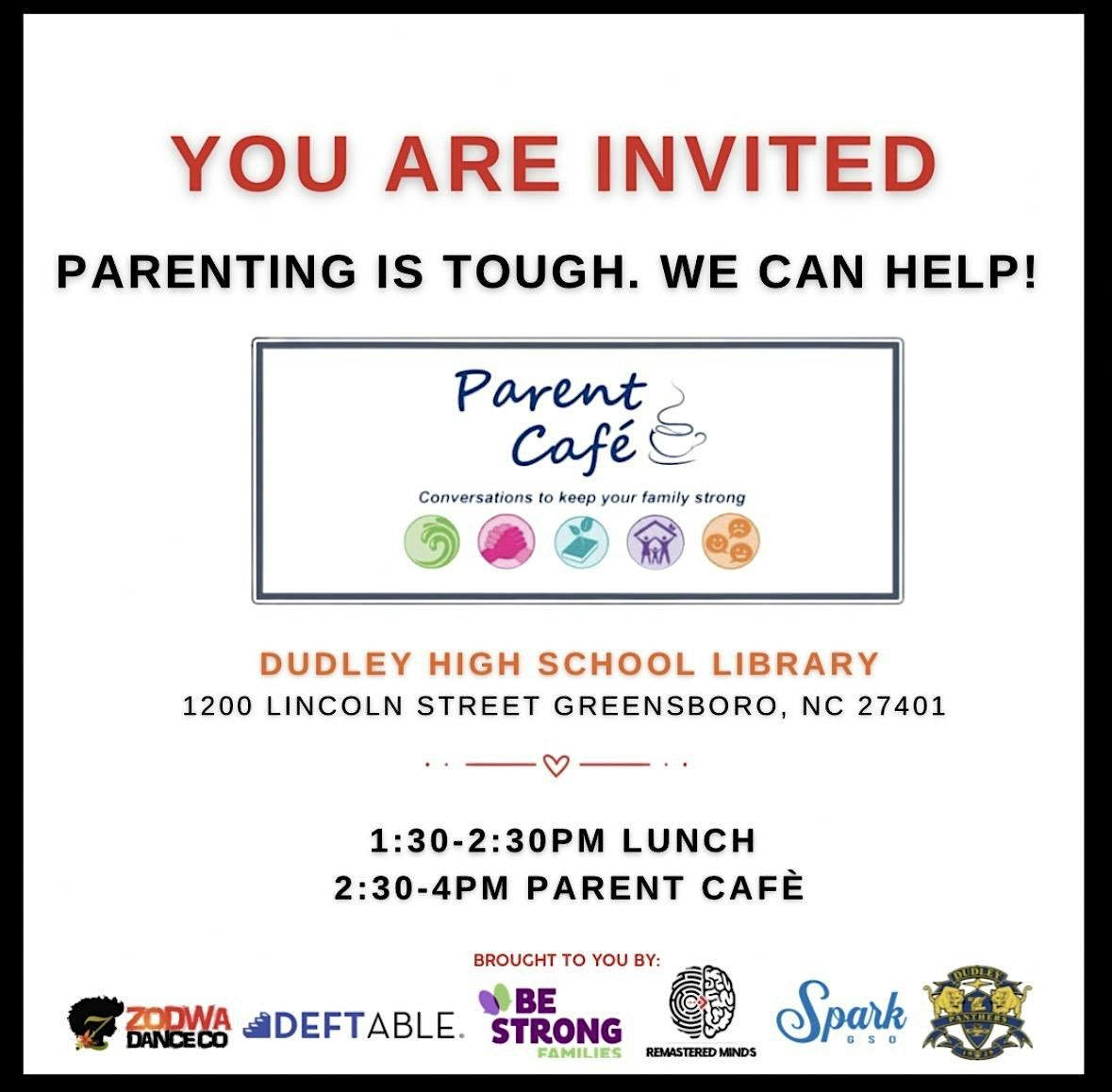 Join us for a FREE, fun, and relaxed in-person gathering at Dudley High School's Library/Media Center. We are coming together to talk/listen, share tips, and support each other. Whether you're a new parent or have years of experience, this is your chance to connect with others who get it. Uncles, aunties, grandparents, and other parental supporters are also welcomed!