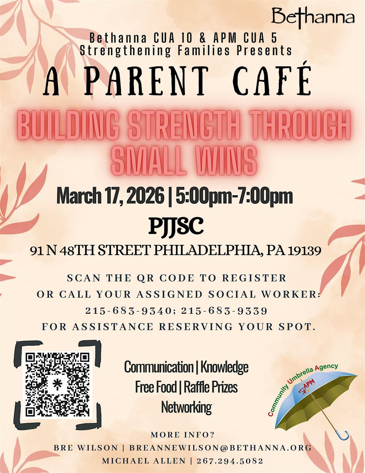 Join us for an in-person parent cafe that's all about celebrating those little victories that add up to big success! Whether you're tackling personal or parenting goals, it feels good to make progress. Discover how focusing on small wins can boost your confidence and keep you motivated. Come hang out, share stories, and walk away feeling empowered to take on your next challenge — one step at a time!