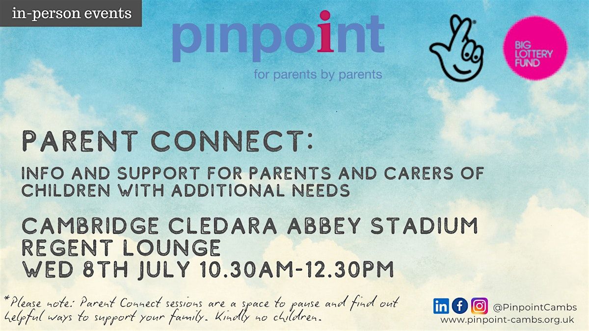 Welcome to Parent Connect Cambridge! Join us at the Cledara Abbey Stadium for a cuppa with others in a similar suituation. We can offer a listening ear, signposting and information to support you where you are at.