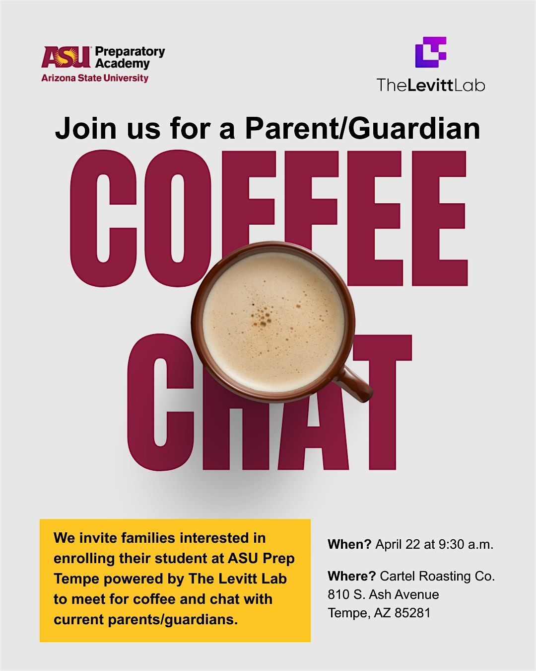 The parents and guardians of current ASU Prep Tempe powered by The Levitt Lab students are hosting a Coffee Chat at Cartel Roasting Co. Tempe. If your family is interested in enrolling your student in our high school, we welcome you to come by and get your questions answered by current members of our community.