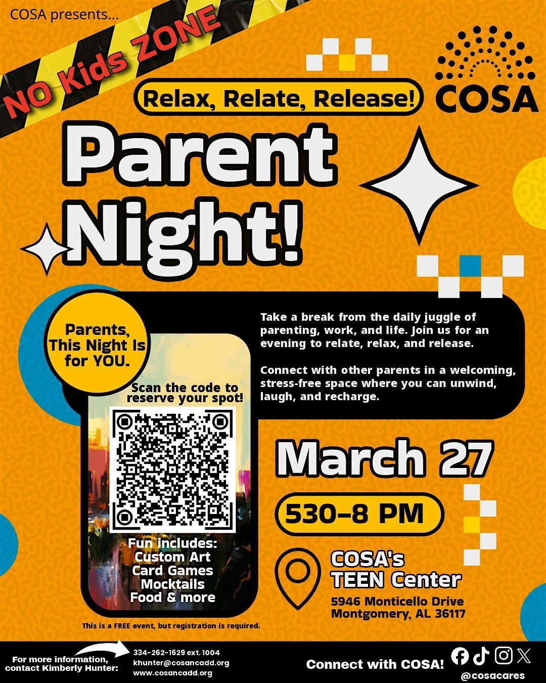 Take a break from the daily juggle of parenting, work, and life—and join us for an evening to relate, relax, and release.