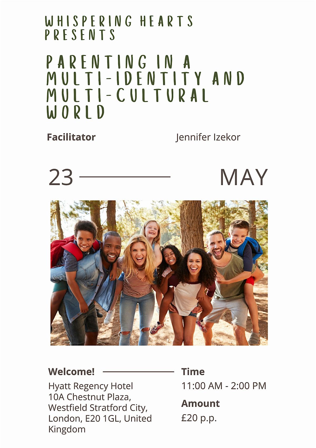 This workshop is for everyone - men and women. Whether your family reflects multiple cultures and backgrounds, or you simply want to be a more culturally aware parent in an increasingly global world, this space is for you. It is open to parents, aspiring parents, and anyone who plays a significant role in the life of a child or young person. You do not need to come from a particular background to find this relevant. In today's world, every child is growing up in a multicultural reality, and every parent can benefit from the tools to navigate it well.