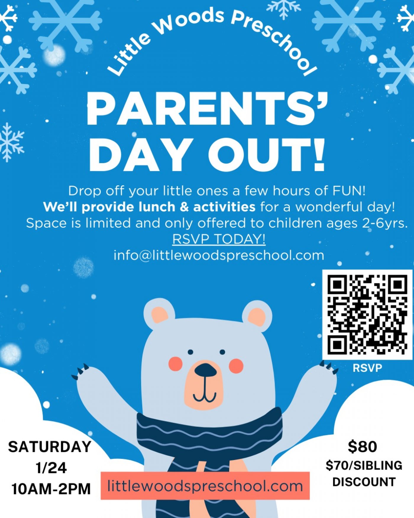 Drop off your little ones for a cozy day of FUN! We’ll provide lunch & activities for a wonderful day!