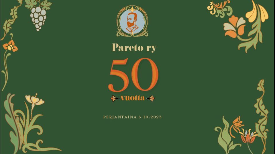 Pareto ry juhlistaa pitkää ja vaiherikasta 50 vuoden taivaltaan tunnelmallisilla vuosijuhlilla 6.10.2023. Ohjelmassa on tietenkin juhlapuheita sekä kolmen ruokalajin illallinen, mutta ennen kaikkea rentoa seurustelua ystävien kesken. Iltajuhlaa vietetään kello 18 alkaen ravintola Laternassa, osoitteessa Puutarhakatu 11. Illalliskortin hinta on 58 euroa, ja se sisältää narikkamaksun. Lipunmyynti vuosijuhlille järjestetään Kide.appissa 4.9.