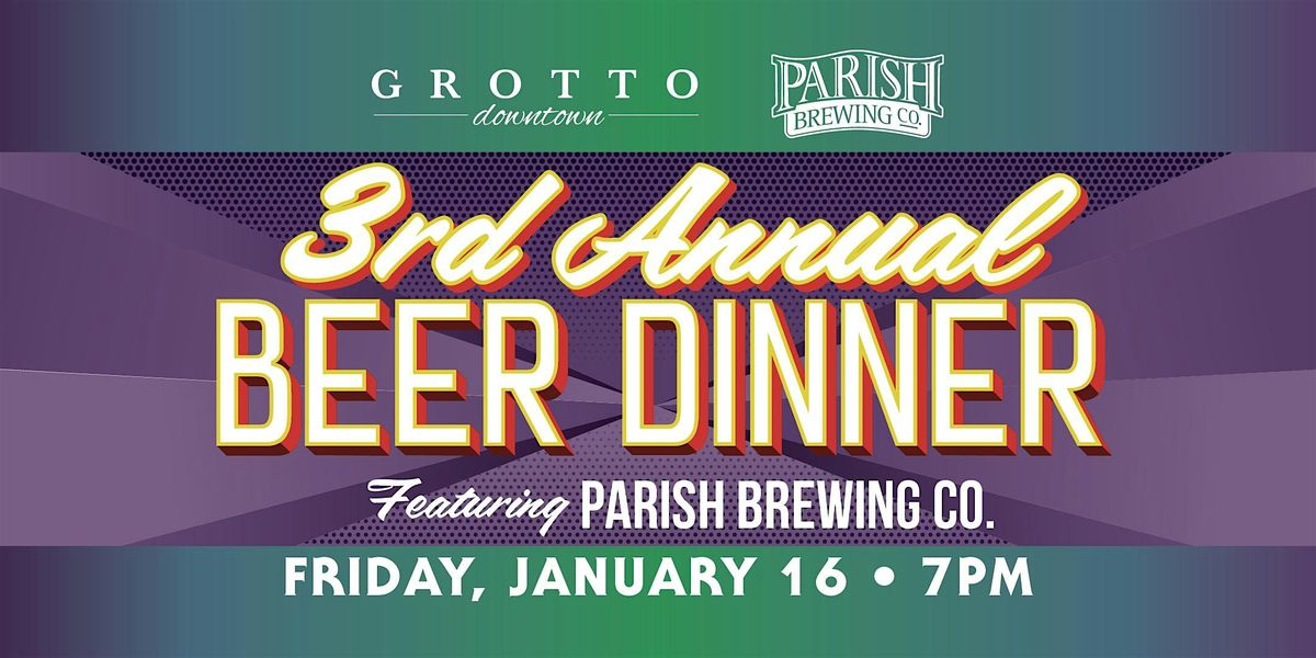 Join Grotto Downtown for a fun night with Parish Brewing Co.! Enjoy a 5-course menu by Executive Chef Josh Oakes specially created to pair with Parish Brewing Co. selections!