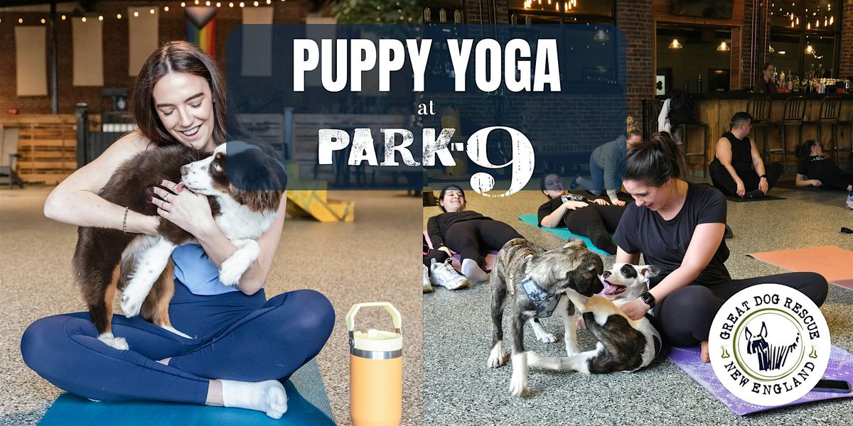 Join us at Park-9 Dog Bar for Puppy Yoga! Starting at 9:45am yoga instructors will lead you through a 45 minute yoga class, accompanied by adoptable puppies from Great Dog Rescue New England.