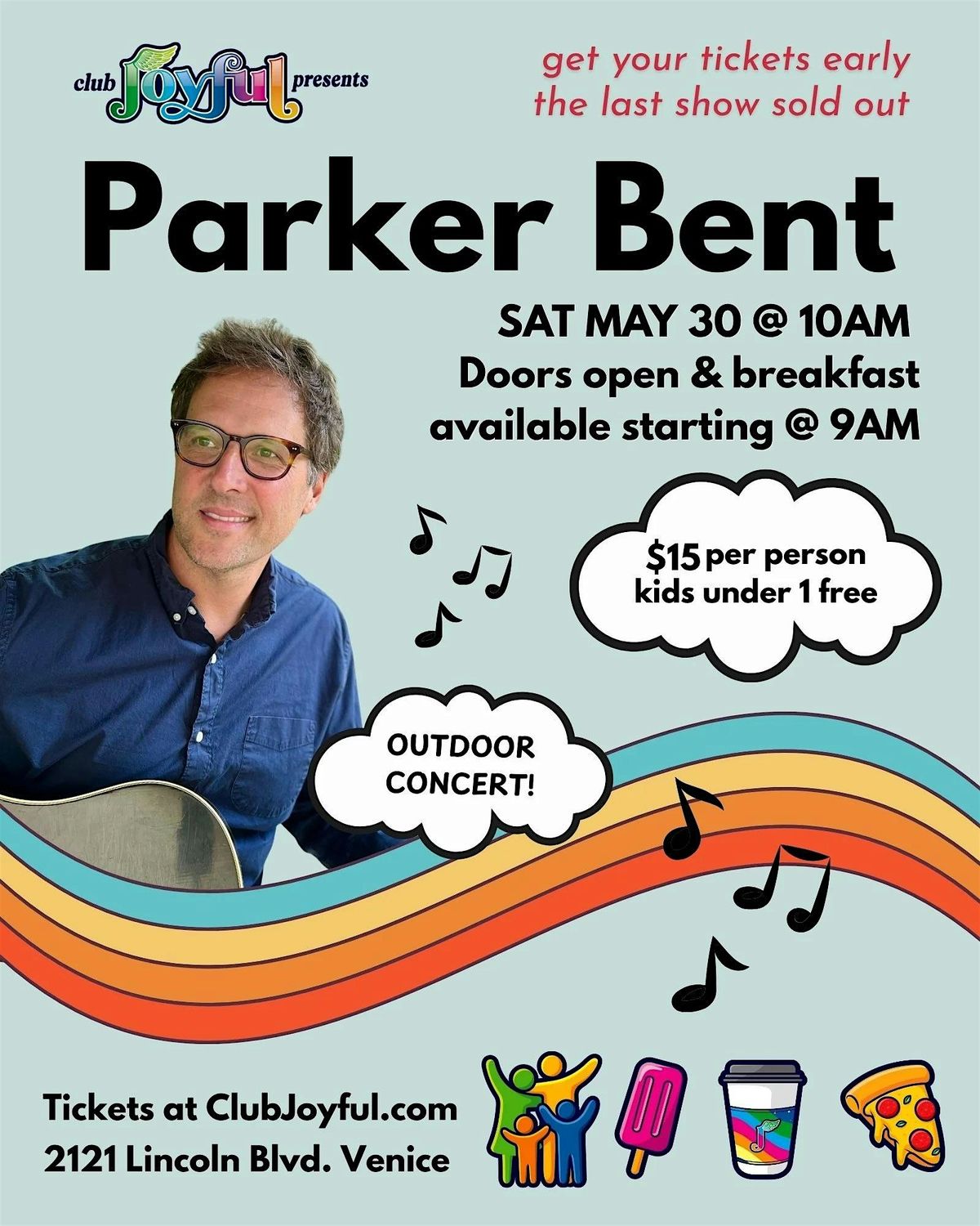 Parker Bent brings his original songs to over 450 kids every week throughout Los Angeles preschools. His music is smart, cool, sophisticated, and fun. It has been played on NPR and Disney Radio, has been recommended by LA Parent Magazine and was awarded the Bronze Medal by the Parents Choice Foundation.