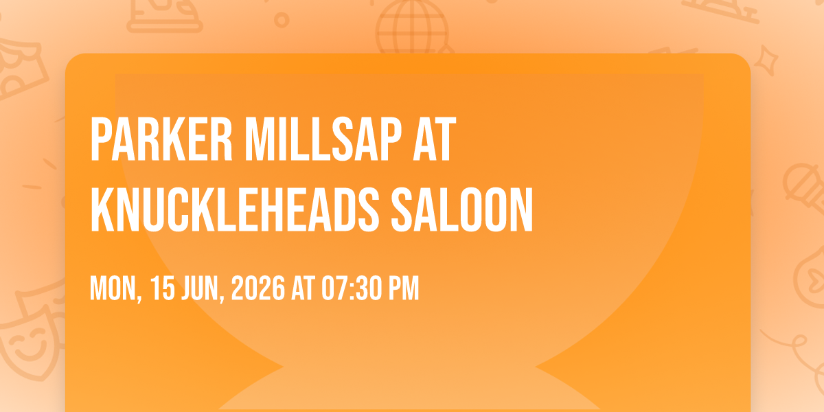 ✨ Enter a world of endless possibilities at Parker Millsap at Knuckleheads Saloon, where every moment tells a story! 🏛️ The stunning Knuckleheads Saloon in vibrant Kansas City, MO transforms into a realm of wonder on June 15th, 2026 at 07:30 PM. 🌟 They have crafted an experience that goes beyond the ordinary, combining elements of surprise, delight, and pure entertainment. Every detail has been thoughtfully considered to ensure your journey with us is nothing short of extraordinary. 🎯 Join fellow adventure seekers and memory makers in this celebration of imagination and innovation. 🎊 Reserve your spot today and be part of something truly special!